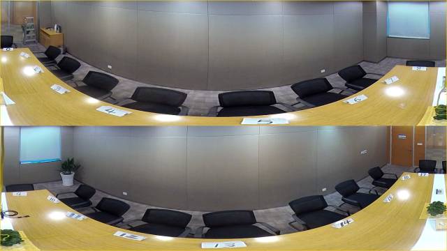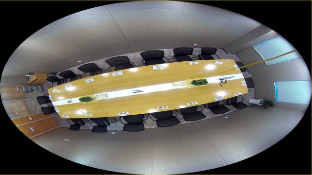 预览效果:能够对两边对称的会议桌座位实现监控,画面可视范围大。