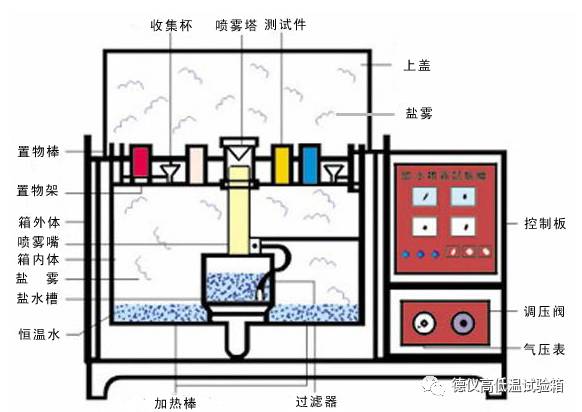 本类盐雾实验箱为人工气候环境“三防”(湿热、盐雾、霉菌)试验设备之一,是研究机械、国防工业、轻工电子、仪表等行业各种环境适应性和可靠性的一种重要试验设备。性能指标符合GB/T5170.8《电工电子产品环境试验设备基本参数检定方法》的要求。该盐雾腐蚀试验箱可按GB/T2423.17《电子电工产品基本环境试验规程试验Ka:盐雾试验方法》,用于中性盐雾试验,也可用于醋酸盐雾试验。