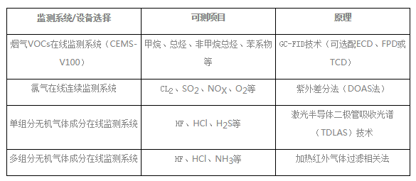 主要监测因子:SO2、NO2、CO、O3、HCl、NH3、HF、Cl2、H2S、颗粒物(烟尘、PM10、PM2.5)、VOCs、非甲烷总烃、有机硫化物、臭气浓度等。