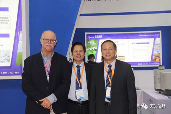 ▲天瑞仪器董事长刘博士(中)亲临现场指导工作,与嘉宾合影