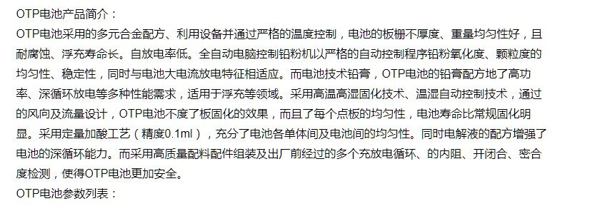 OTP蓄电池产品特性