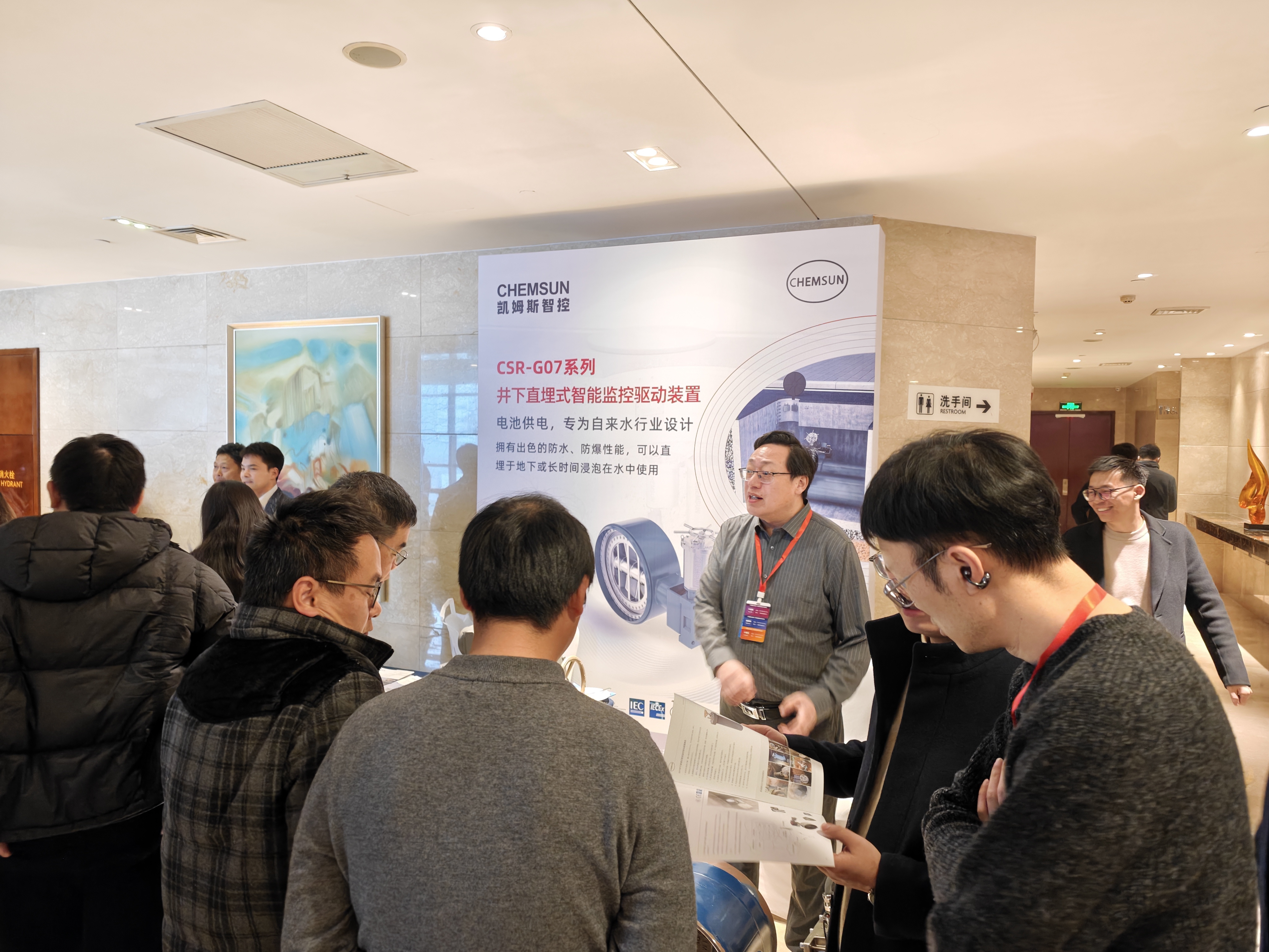 凯姆斯 G07 凭借优异的防水防爆性能成为展示亮点。产品采用电池供电、无线远传设计,可直埋地下或长期浸水使用,无需外接电源、无需人员下井,即可实现管网远程智能控制,为复杂井下工况下的安全稳定运行提供了强有力保障。展会期间,凯姆斯智控与来自全国各地的水务公司管理者、行业专家进行了深度技术交流和合作洽谈,并就实际应用场景中的技术细节与解决方案进行了深入探讨。