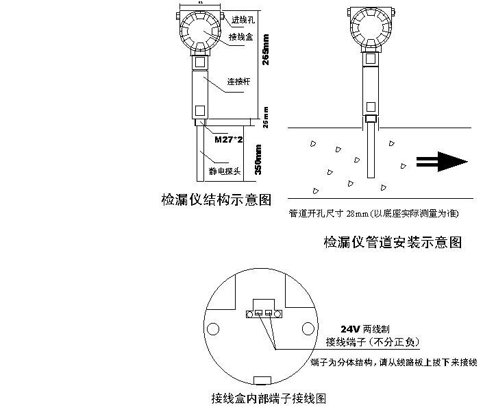 概述:XC2421(iCNN1)装置提供了目前世界交流耦合技术。这是现代最和稳定的监测技术,特别适合连续排放记录和数据累积。本监测系统工作原理是运用尘埃粒子流经探针周围所产生的电荷感应来确认尘埃粒子在线排放量(mg/sec)或排放浓度(mg/m3)。在燃烧工况相对稳定的情况下( 即在同一个排放点上,流速、温度、压力、湿度和烟尘颗粒性质都没有很大的变化,小于±90%的变动),本系统经直接校定后也可用于在线监测排放浓度(单位=mg/M3)。特性与优点:1、采用的实用技术—电荷感应技术,对粉尘的探测灵敏度高,线性度好,粉尘沾染探头后不影响测量灵敏度,免维护免清理。2、标准二线制4-20mA电流输出,抗干扰能力强,易于远距离信号传输,对信号传输导线无特殊要求,输出电流与粉尘浓度成线性关系,方便后续的PLC数据处理。3、安装使用与二线制压力变送器完全一致,现场工程技术人员无须任何特殊培训即可正确使用,安装方便运行可靠。4、接线盒内置一体化变送器输出的4-20mA电流与粉尘感应探针之间电气隔离,实现信号的安全传输。应用:l TRT发电、煤气化装置l 粉状材料回收l 过程粉尘输送总量监测l 各种燃料锅炉的烟尘排放浓度监测XC2421(iCNN1)型粉尘浓度检测仪广泛应用于各种工业用途,包括:炼钢、发电、石油、化工、医药、建材加工、采煤和采矿、水泥制造和包装等行业原理:XC2421(iCNN1)型粉尘浓度检测仪测量尘埃粒子经过一个固定探头的静电荷感应量。尘埃粒子与探头感应产生静电荷,通过探头进行信号放大并传送进监测控制系统。静电荷的大小与尘埃粒子的流量成比。本系统的高科技电子线路把这部分电荷转换成为控制信号输出,启动粉尘超标排放警报,同时用于连续记录粉尘粒子的总量或浓度。安装①传感器装在距阀门、弯头5倍以上管径处,在水平管道安装时,不得装在底部。对多个箱体并联运行的煤气除尘系统,应在被测除尘箱体的出口处进入净煤气总管前的管道上开孔(开孔尺寸为φ28mm),将固定传感器的底座接口端垂直焊接在直管段较长的水平管道顶部。 ②底座应是传感器探棒的绝缘套底端与管道内壁持平或突出管道内壁。底座由仪表厂家配套供应。③传感器与插座之间加紫铜垫,以丝扣连接并拧紧,防止管内有毒气体泄漏。④传感器接线盒为防雨式,信号电缆通过接线盒上的穿线孔,直接接到盒内的接线端子,然后压紧密封胶圈,外引电缆应就近固定,以防风雨中来回摆动,造成传输导线的机械损伤。