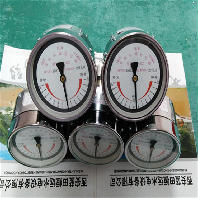 SLX双向示流信号器是用来监视管路中的水流流量,当流量达到设定值时,示流信号器发出电信号。反馈到保护系统或控制流量的系统中去,从而保护主设备能正常工作。在现场,还可通过观察指针的偏转程度来判断水流情况。本示流信号器设计成双向指针型,也适应有反向冲水系统。