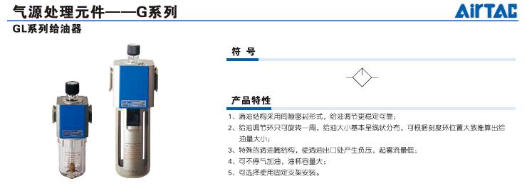 给油器的使用方法:给油器使用JIS K2213输机油(ISO Vg32或同级用油)。加油量请不要超过杯子八分满。数字0为油量最小,9为油量。自9-0位置不能旋转,须顺时针旋转。