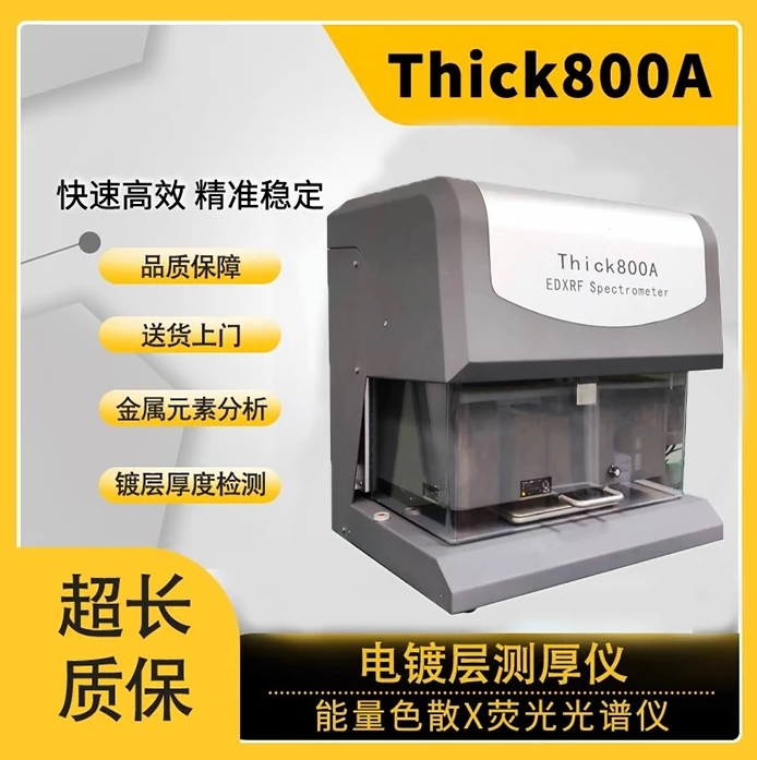 X射线测厚仪是解决镀金层,镀银层,镀镍层厚度测试的仪器,具备无损分析,快速测试,简便操作的特性,分析范围是0-50微米,不同的镀层种类都有特定的极限穿透厚度,其分析达0.005微米,thick800aX射线测厚仪由江苏天瑞仪器公司研发,生产的,的高科技分析仪,产品荣获国家分析仪器产品奖。随着市场竞争日益激烈,企业成本的不断提高,客户对X射线测厚仪(THICK800A)的测试要求越来越高,普通的电镀膜厚测试仪无法满足客户的要求,X射线测厚仪通过X射线照射,不同元素的发射出不同能量及强度的X光,通过接收器及软件分析来分析金属(铝合金、铜合金)电镀层(镀锌、镀镍、镀金、镀银、镀锡等)的厚度,天瑞仪器是X射线测厚仪(国产)厂家,完全无损分析,多分析五层,薄可分析0.005μm,采用上照式照射,移动探测器和X光管上下可动,可以对凹面和凸面达到更好的测试效果,完成下照式对某些特殊样品无法测试的效果。