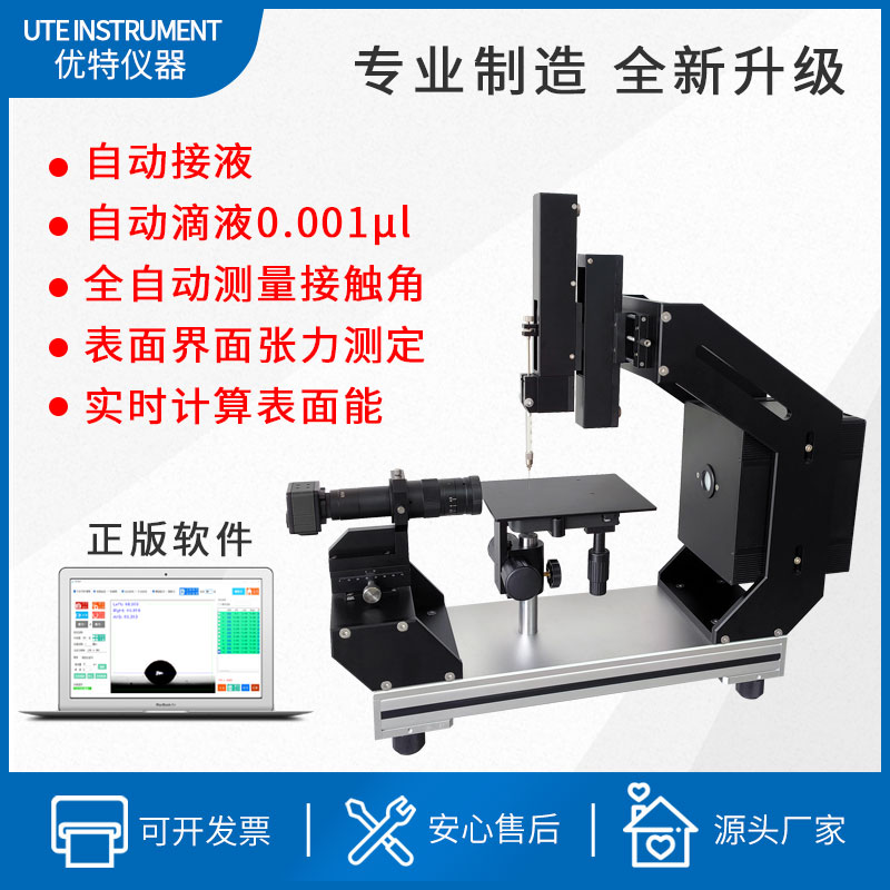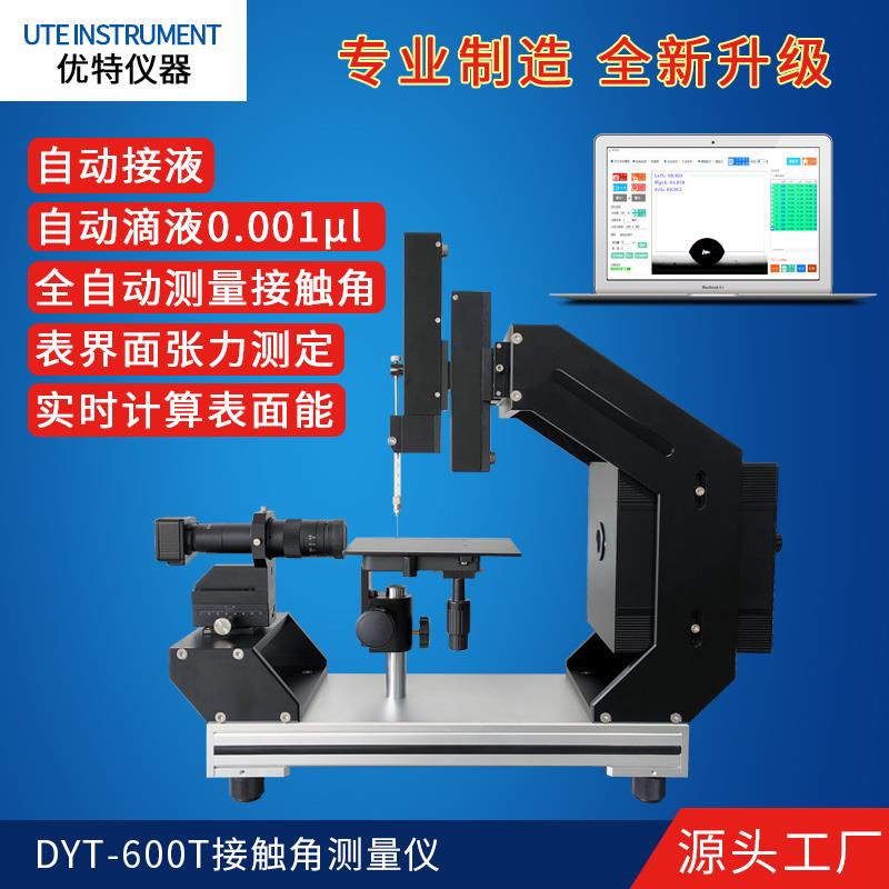DYT-600T接触角测量仪具备自动滴液和自动接液功能,可实现对接触角的全自动测量。