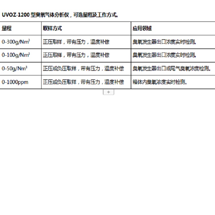 检测原理:紫外光双光路吸收法,用于臭氧发生器出口浓度实时检测或尾气臭氧浓度检测。