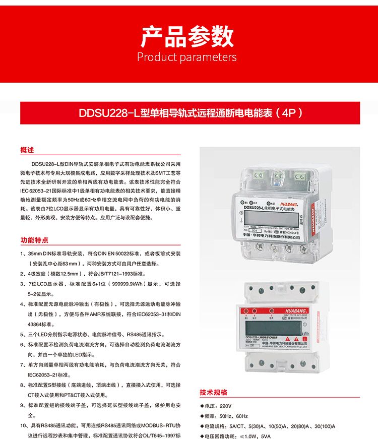 DDSU228-L单相4P远程拉合闸导轨表