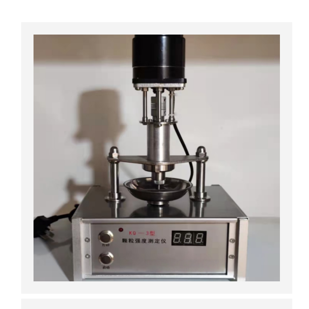 颗粒强度测定仪为电动加压。仪器适用于测定园球或园拄状及园片状的脆性颗粒物料的抗压碎强度。如颗粒肥料、颗粒饲料、催化剂等的强度测定。
