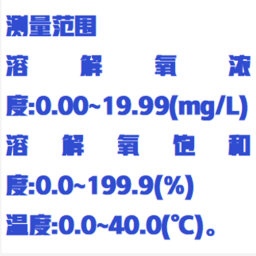 溶解氧浓度:0.00~19.99(mg/L)溶解氧饱和度:0.0~199.9(%)温度:0.0~40.0(℃)。