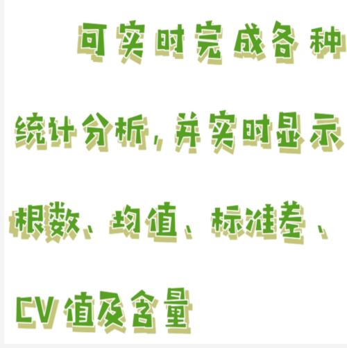系统在测量的同时,可实时完成各种统计分析,并实时显示根数、均值、标准差、CV值及含量。统计数据包括: