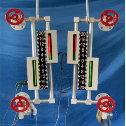 双色水位计是用在锅炉汽包上或其它压力容器上、用来监视水位变化的一次仪表。它是通过光的反射、折射、透视等不同原理,使气相呈红色,液相呈绿色。运行人员在现场或集控室的监视器上可直接看到水位计里面水位的变化。