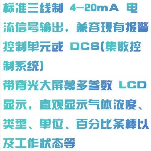 ? 标准三线制 4-20mA 电流信号输出,兼容现有报警控制单元或 DCS(集散控制系统)