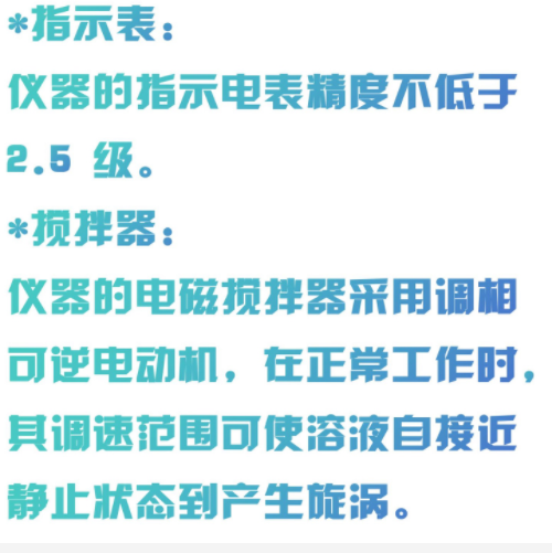 5.搅拌器:仪器的电磁搅拌器装有止动与变速装置,在正常工作 时, 其调速范围可使溶液自接近静止到产生漩涡