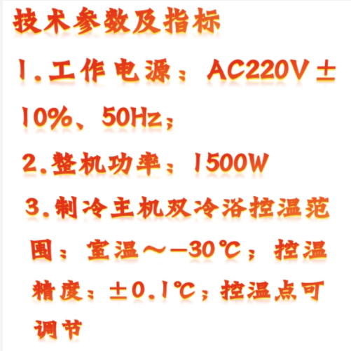 3.制冷主机双冷浴控温范围:室温~-30℃;控温精度:±0.1℃;控温点可调节