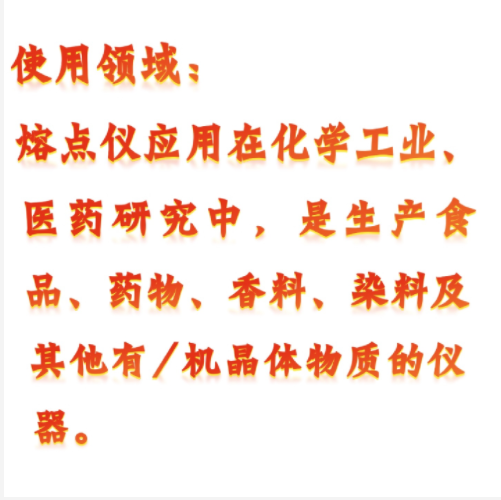 熔点仪应用在化学工业、医药研究中,是食品、药物、香料、染料及其他有/机晶体物质的仪器。