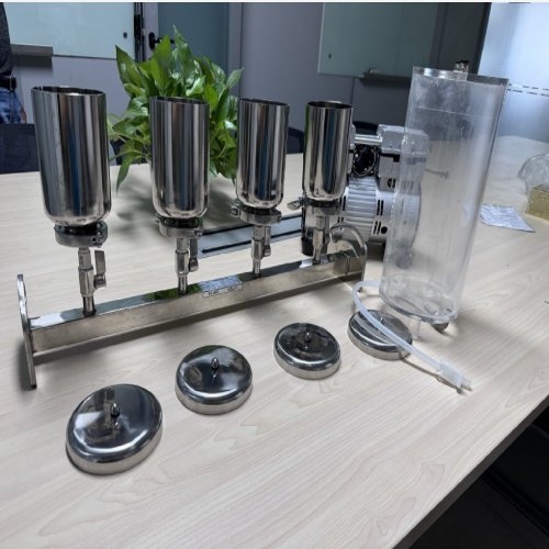 四联不锈钢过滤器(抽滤装置)是一种应用于化学实验室中的溶液过滤装置。可同时对多个样品进行过滤,或者单独进行过滤样品。提高实验工作效率。主要应用于化学分析、仪器分析、检验、制药工业、生物制品和农药、石油监测、自来水、污水等方面液体过滤。