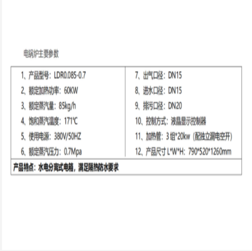 一、电锅炉主要参数