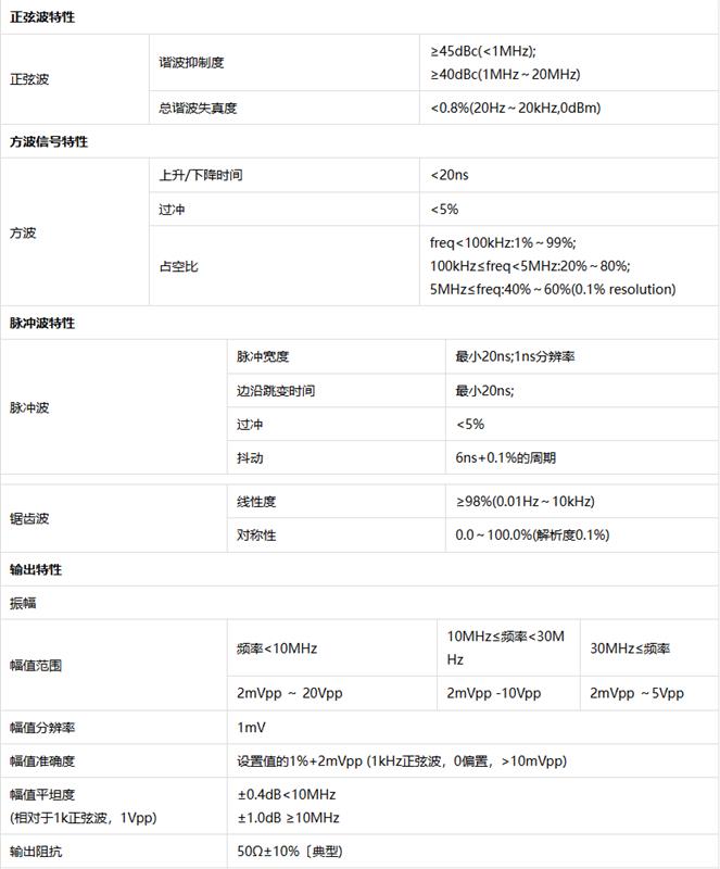仪器配备的3.5英寸480×320 TFT LCD显示屏带来出色的视觉体验,图形化界面设计直观清晰,波形预览和参数显示一目了然。在波形特性方面,正弦波谐波抑制度在1MHz以下优于45dBc,在1MHz至20MHz范围内仍保持40dBc以上;方波上升/下降时间小于20ns,过冲控制在5%以内;脉冲波最小脉宽达20ns,分辨率1ns;锯齿波线性度在0.01Hz至10kHz范围内不低于98%。这些的参数指标确保了输出波形的高度保真。