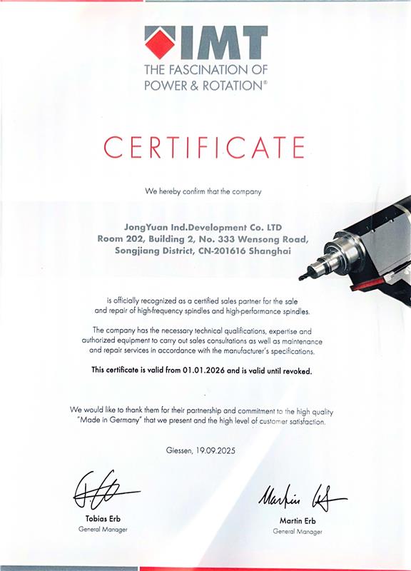(图5是德国IMT原厂颁发的代理及售后维修授权证书)