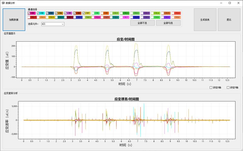 ◆ 多通道同步:单通道高达 10kHz 采样率,实时同步显示波形与数值,直观分析应变差异。