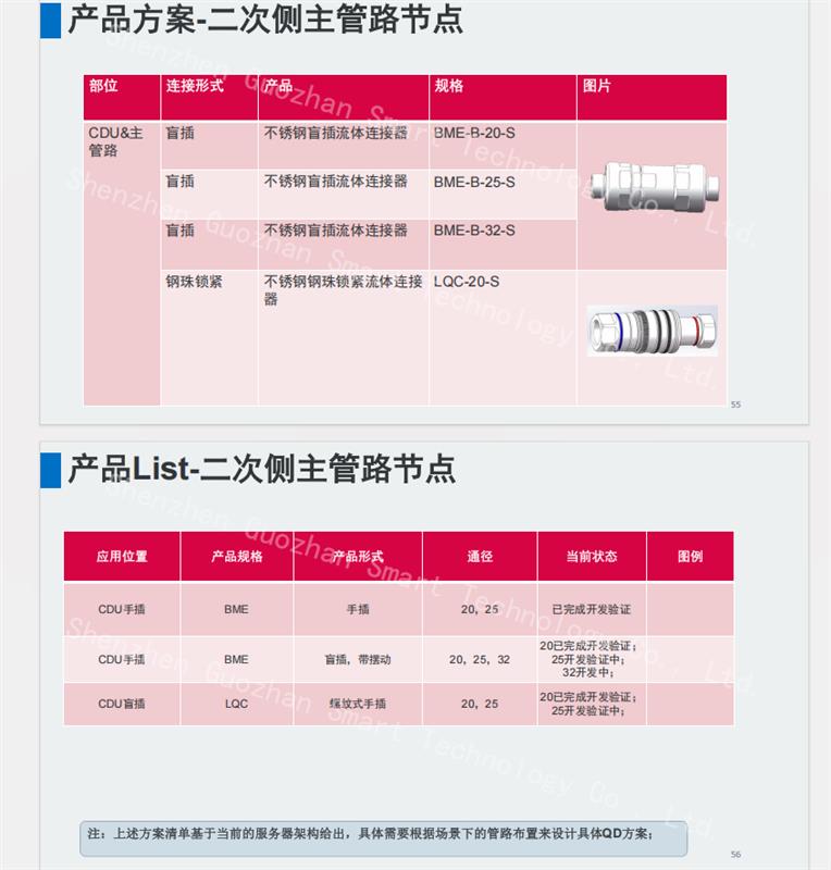 公司以技术攻坚为根基,组建专业研发团队突破无滴漏密封、插浮动适配抗杂质腐蚀等核心技术,研发的产品覆盖 Nvidia H100至 GB200 GB300全系列AI 芯片,兼容 0CP UQD/UQDB、BMQC 等主流标准,可满足服务器节点、CDU 主管路、喷淋 / 浸没系统等全链路需求。依托万级无尘车间与 CNAS 17025 认证实验室,产品通过 1.6MPa 耐压、-40℃~150℃温域、2000 次以上连接测试,累计交付超 20 万套,服务头部互联网与超算企业。