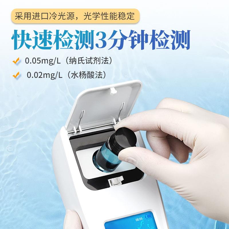 检测下限:0.05mg/L(纳氏试剂法); 0.02mg/L(水杨酸法);