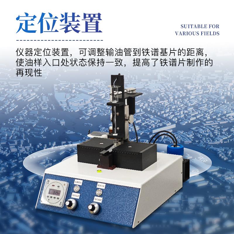(11)仪器定位装置,可调整输油管到铁谱基片的距离,使油样入口处状态保持一致,提高了铁谱片制作的再现性;