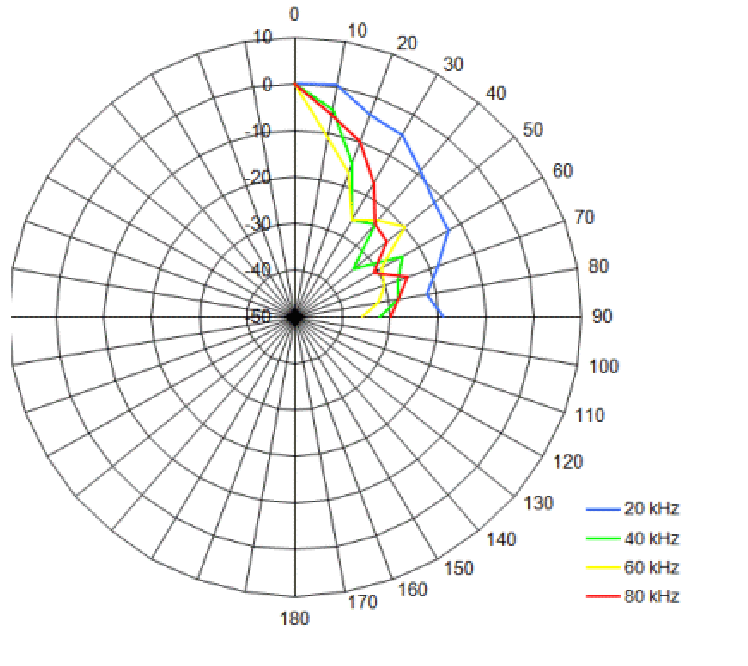 l 50 kHz 时的灵敏度:86 dB声压级/ 2.83 伏均方根/ 1 米;
