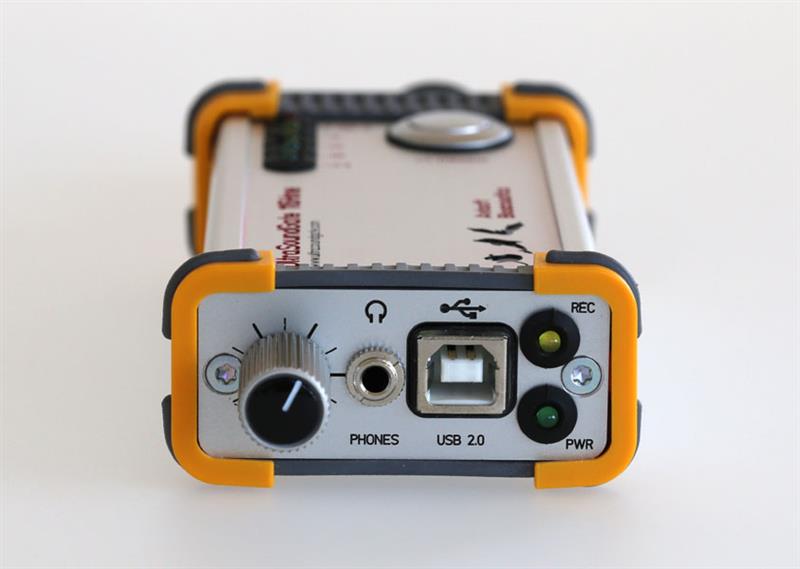 紧凑的移动超声记录接口,带有平衡模拟输入、峰值液位计、触发按钮、声学监测输出、坚固的铝制外壳、USB 2.0 接口、记录软件 Avisoft-RECORDER USGH 和防水运输箱。由于其紧凑的尺寸和集成的峰值液位计,该装置当然适合在现场与小型超移动 PC(子笔记本电脑或上网本)一起手持使用。