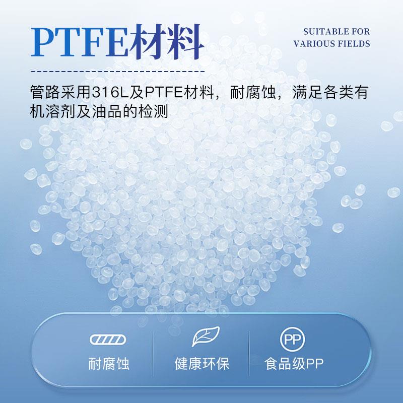 管路采用316L及PTFE材料,满足各类有机溶剂及油品的检测