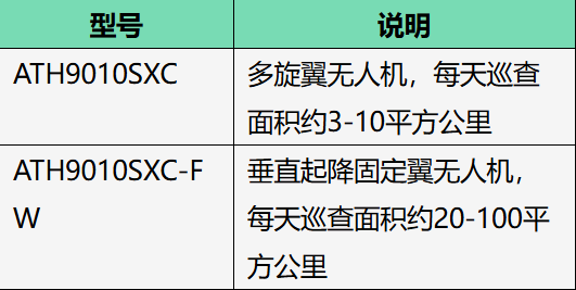 ATH9010SXC | 多旋翼无人机,每天巡查面积约3-10平方公里 |