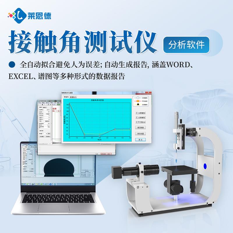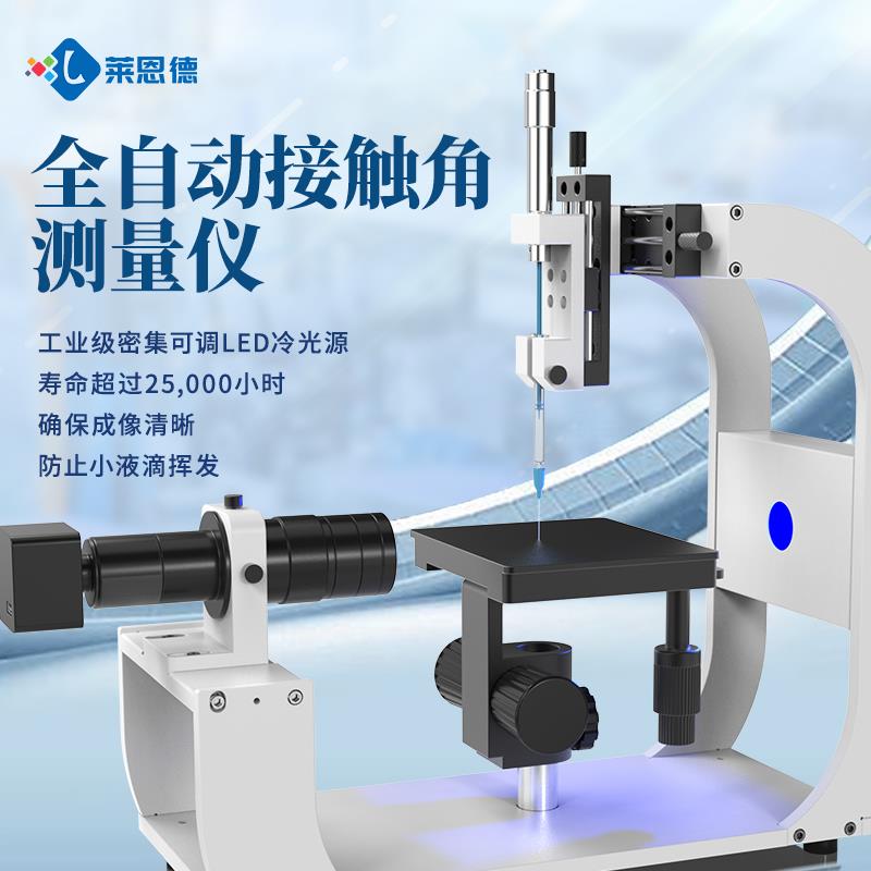 全自动光学接触角测量仪是测量液体对固体材料接触角的仪器,主要用于表征液体对固体材料表面的润湿性能,通过光学成像获取液滴的图像,利用计算机软件,通过数学模型拟合出液滴图像的轮廓并得到接触角或表面张力,并进行表面能计算和润湿性分析。