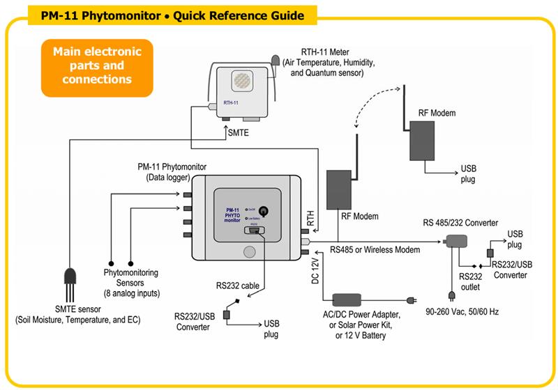 Bio Instruments SRL 提供的用于 PM-11 植物监测仪的每个传感器都配备了带有 IP67 BINDER 插头的标准 4 米电缆。可选配电缆延长线。为了连接合适的第三方传感器,Bio Instruments 提供了一个特殊的适配器(可选)。