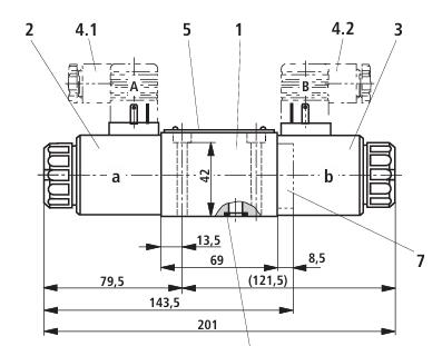 这种阀门设计的功能基本上对应于具有三个开关位置的阀门。然而,双开关位置阀仅配备磁铁“A”。而不是2。按比例,在NG 6处有一个封闭螺钉(8.1),在NG 10处有一个盖子(8.2)。