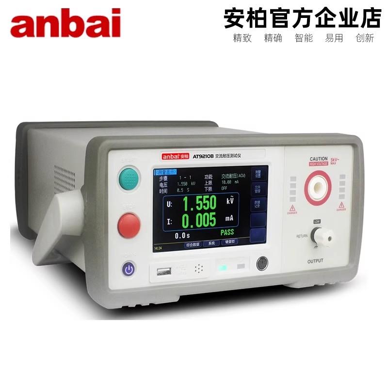 常州安柏 AT9210B 是单功能交流耐压测试仪,核心为 5kVAC/10mA 正弦波输出、低失真线性功放、5 寸触控屏与强自动化接口,适配家电 / 变压器 / 元器件安规产线与质检,性价比突出。