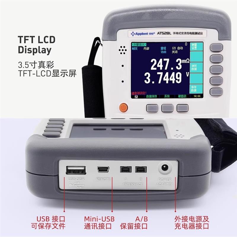 | AT525/AT528L | 手持电池内阻 | AT525:0.001mΩ~3.3Ω/0.5%;AT528L:0.1mΩ~200Ω/0.5% | 四端开尔文,数据存储 500-1000 组,USB 导出 | UPS 在线维护、电池劣化评估 |
