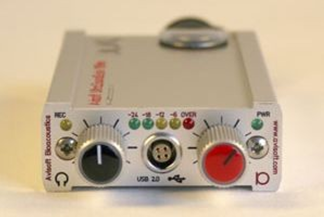 超声录音声学录制仪非常小的移动式超声记录接口,带有平衡模拟输入、峰值液位计、触发按钮、声学监测输出、坚固的铝制外壳、USB 2.0 接口、记录软件 Avisoft-RECORDER USGH 和防水运输箱。由于其体积小和集成的峰值液位计,该装置当然适合在现场与小型超移动(平板电脑、上网本或超极本)PC 手持使用。