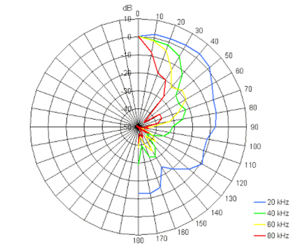 l 50 kHz 时的灵敏度:60 dB声压级/ 2.83 伏均方根/ 1 米