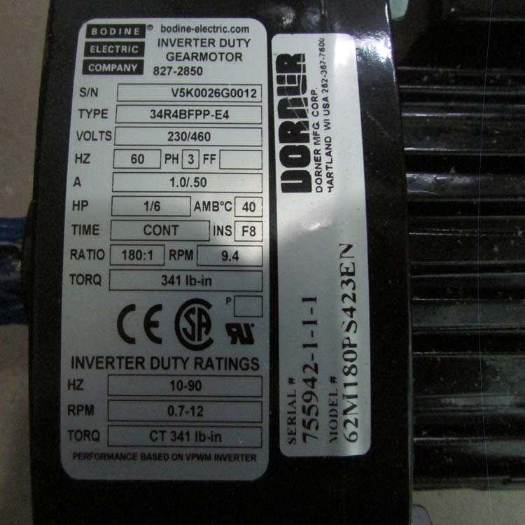 Dorner62MS423Motor0.25HP1725RPM208-230/460V~60Hz