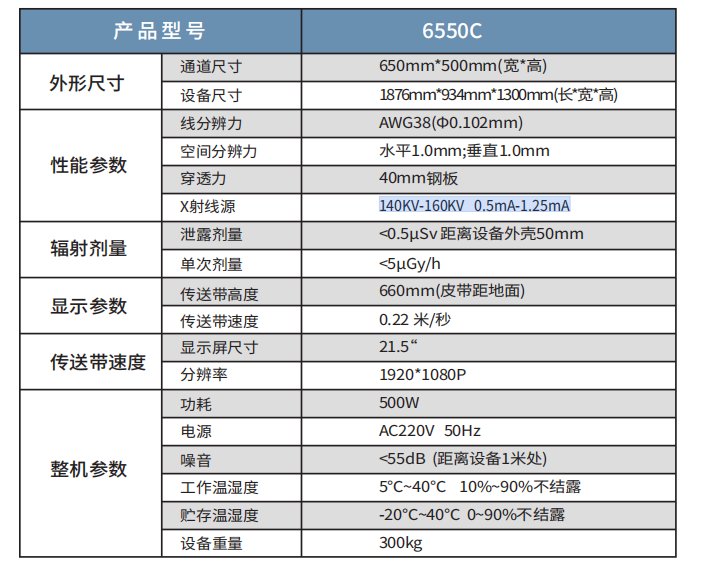 6550C严格遵循辐射安全标准,采用多重屏蔽结构设计,确保设备外壳泄漏剂量低于0.5μSv/h,远低于国家限值。其先进的低剂量成像技术对胶卷、芯片、电子产品等敏感物品安全无害,实现安检零风险,保障操作人员与公众安全。