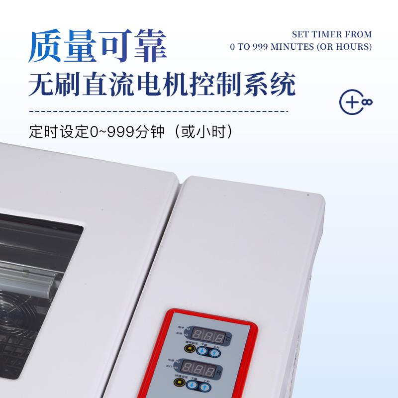 台式恒温小型振荡器专为需求用地面积小的用户设计。具有小外形体积,大工作空间的特性。可以放置在坚固的台面或地面。该型摇床装备PID控温系统和无刷直流电机控制系统,可满足对温度和速度有较高要求的用户需求。