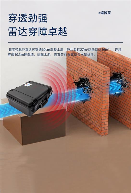 3.雷达穿透大于50cm厚实体混凝土墙探测静止生命体时,纵向平均探测误差小于10cm,水平方向平均误差小于30cm
