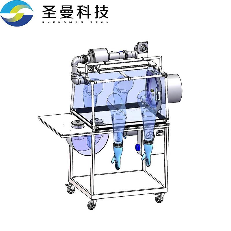 原料袋与回料管道和原料输送管连接端口之间的本体上安装有收紧原料袋的分隔箍,所述的原料袋与原料输送管连接端口的上方设有一个搅拌口,所述的搅拌口向内凹陷有筒状密封搅拌套。