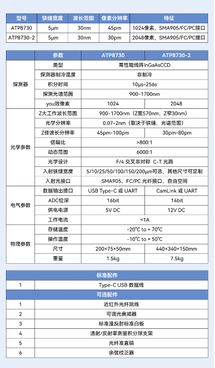 一、ATP8730超高分辨率短波红外光纤光谱仪核心参数