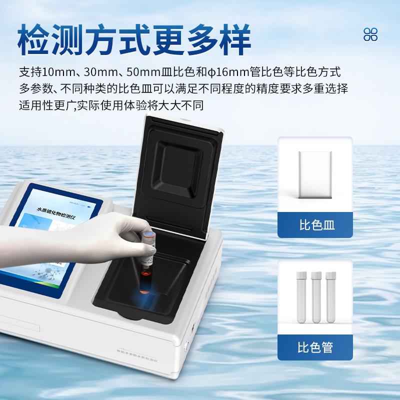 5、支持10mm、30mm、50mm皿比色和φ16mm管比色等比色方式,多元选择,确保测量的准确性;