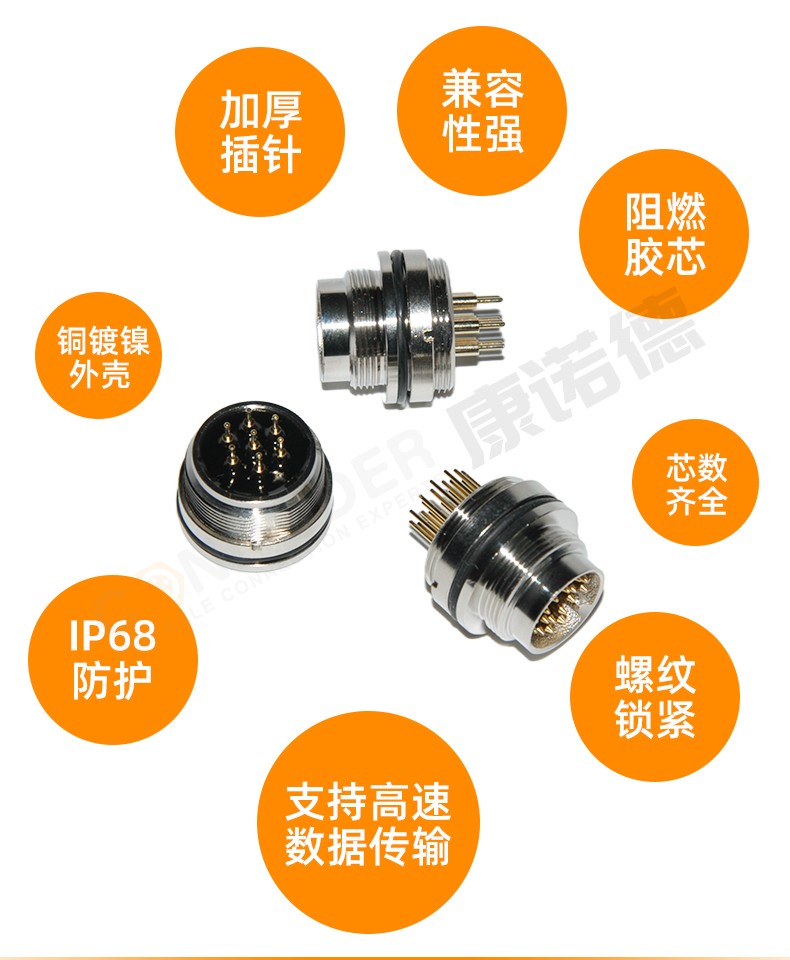防水防尘、抗震抗腐蚀、耐荷载、屏蔽与抗干扰、螺纹锁紧