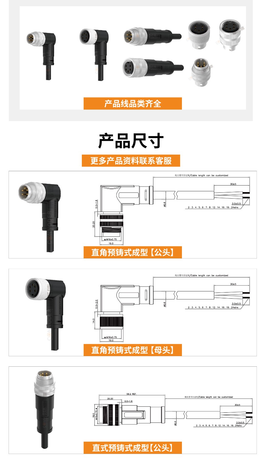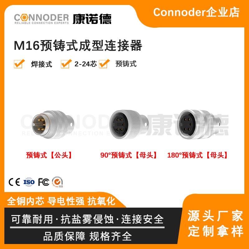 M16-插头焊线成型包胶插头2-24芯公端预铸电源